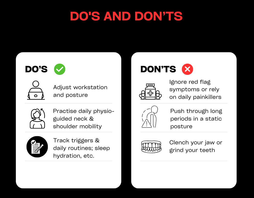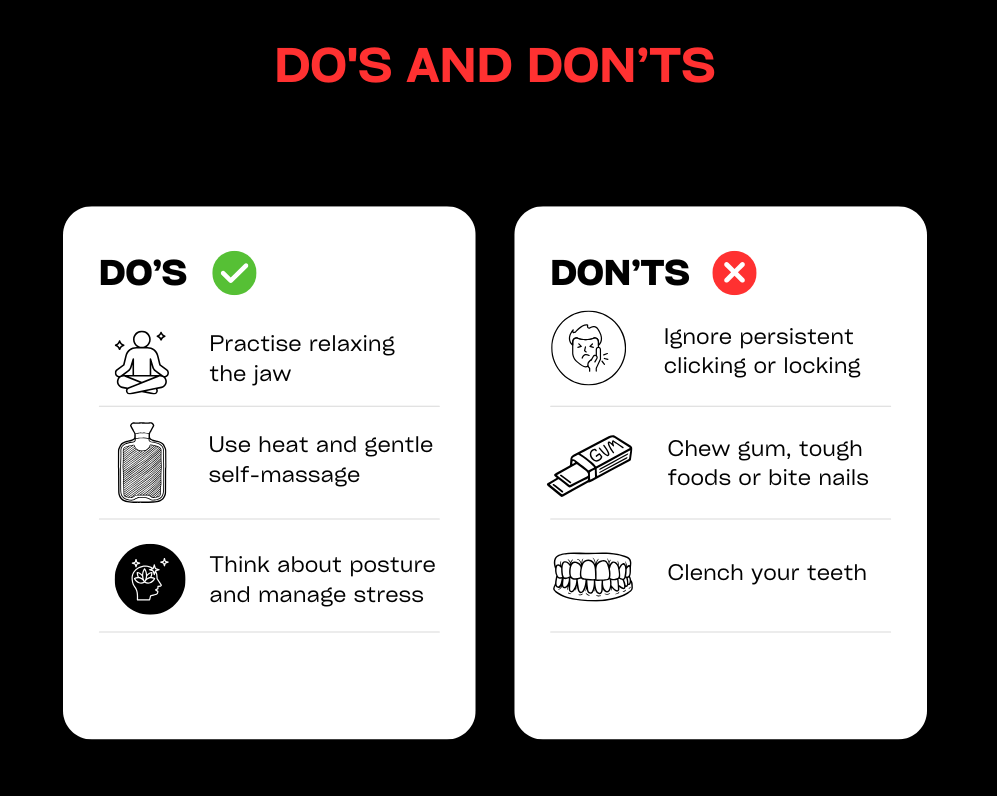 - If you have severe tooth pain or sudden changes to your bite, see a dentist first. Combined care between a physio and dentist often yields the best results.